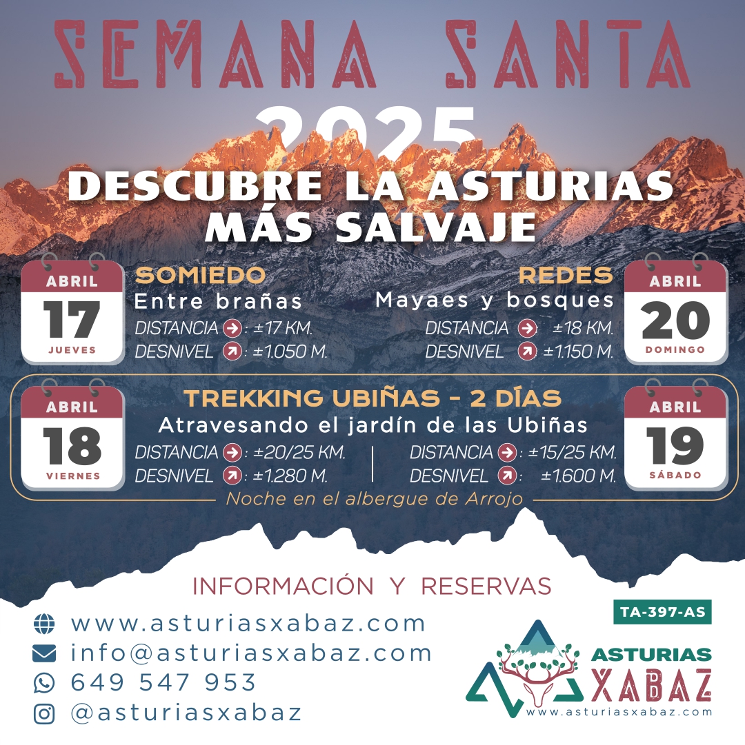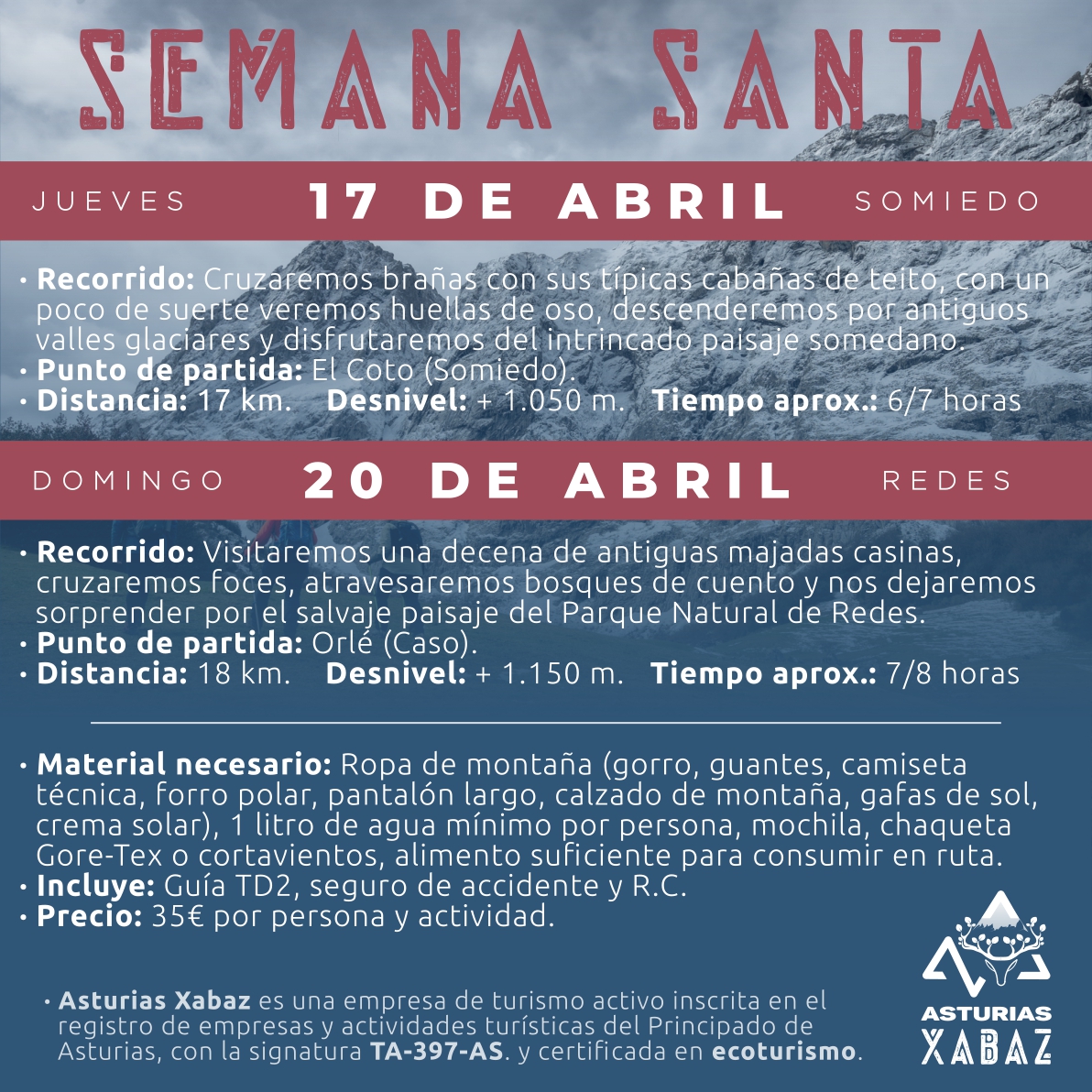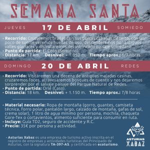Para esta semana santa os tenemos preparadas 2 rutas de 1 día (jueves y domingo) y un trekking de 2 días (viernes y sábado).